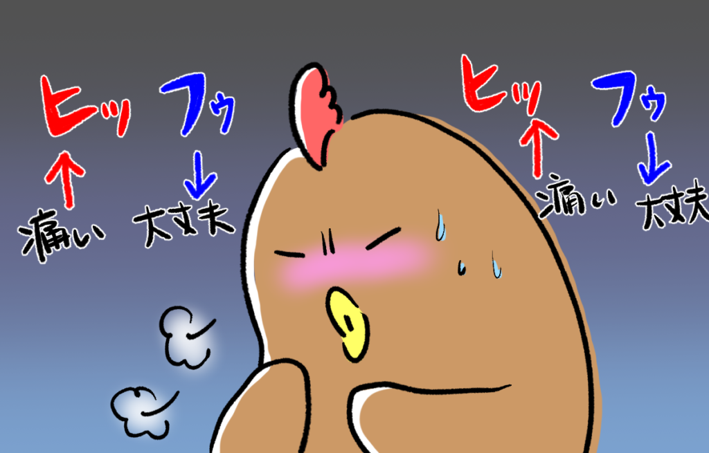 針生検直後の様子です。耐え難い痛みではないものの、痛み止めを飲みたい程度には痛かったです。喀血はありませんでした。 -