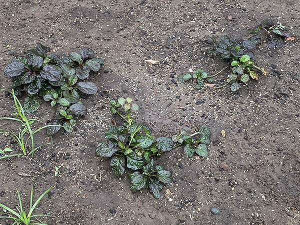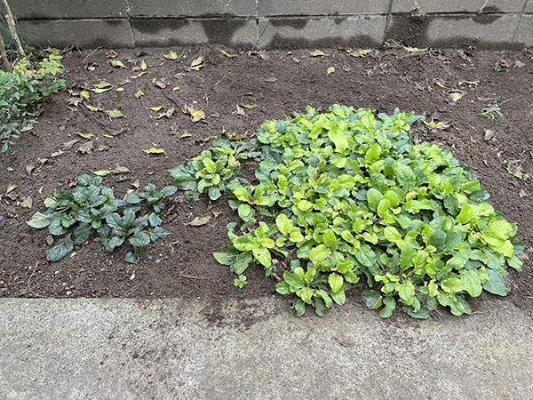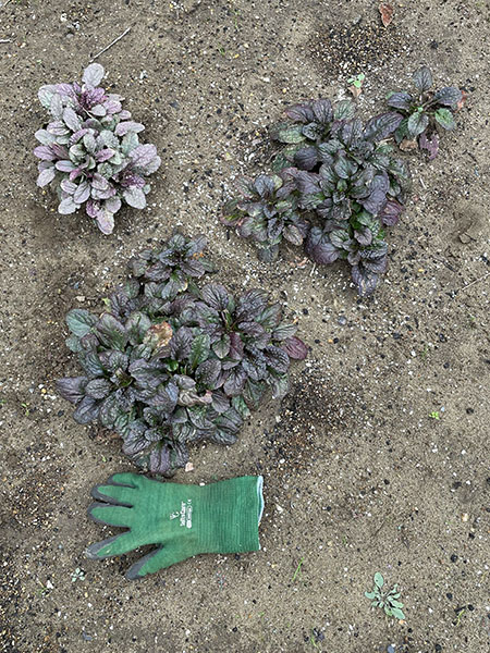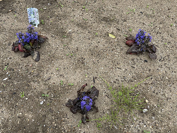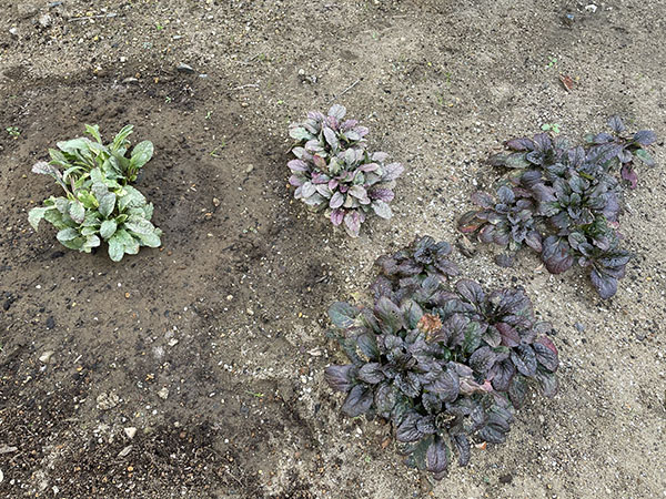 アジュガは丈夫で勝手に広がると見聞きしていたのに、思ったほど増えも広がりもしなかった印象です。