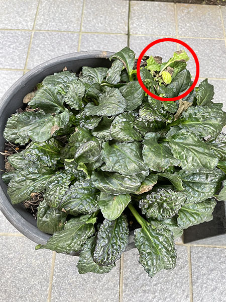 25/11/6 一夏放置したら、鉢の中はキャトリンズジャイアントばかりになりました。赤丸が多分ゴールドライム。