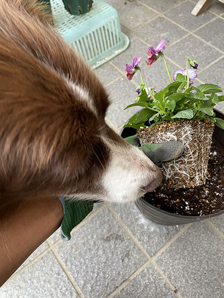 鉢は昨年使用した7号鉢。もちろん1株オンリー。美しいビオラはこの植え方が良いのです!