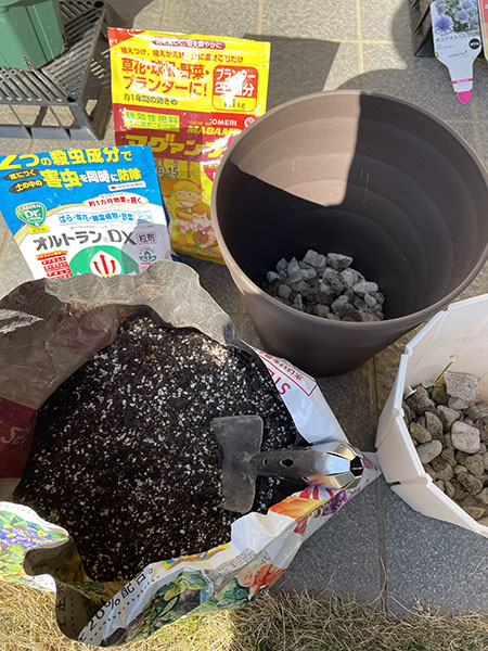 元肥のマグァンプKと害虫予防のオルトランDXもパラパラっと。
