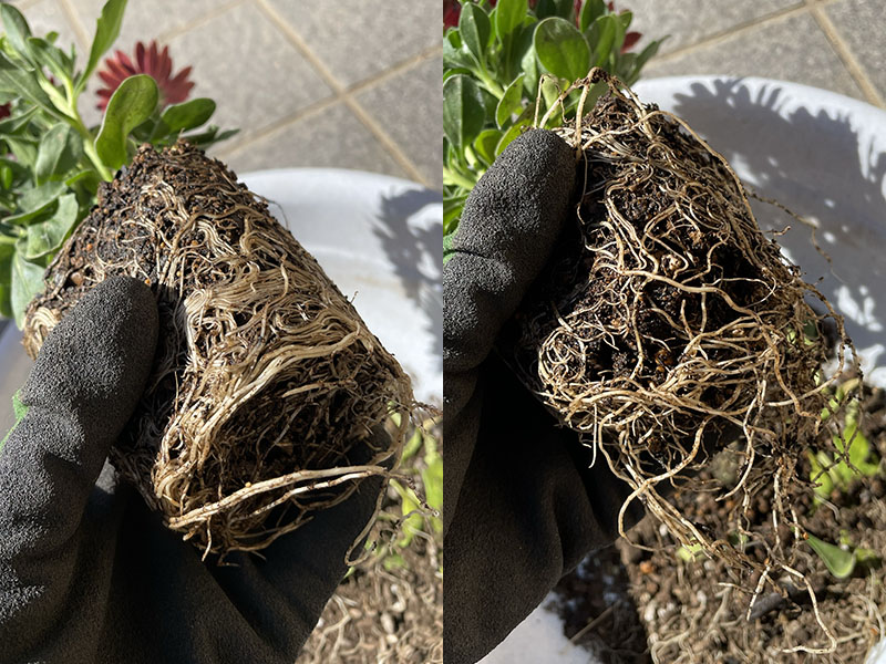 赤とんぼの根っこはそこまでぎゅうぎゅうではありませんが、こちらも少しほぐすことに。